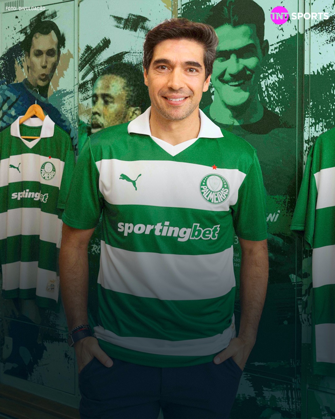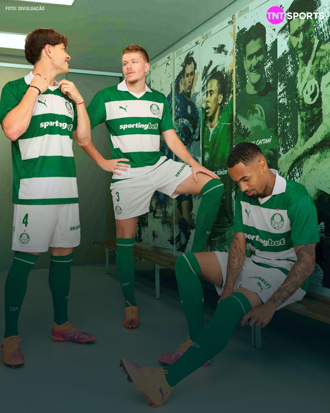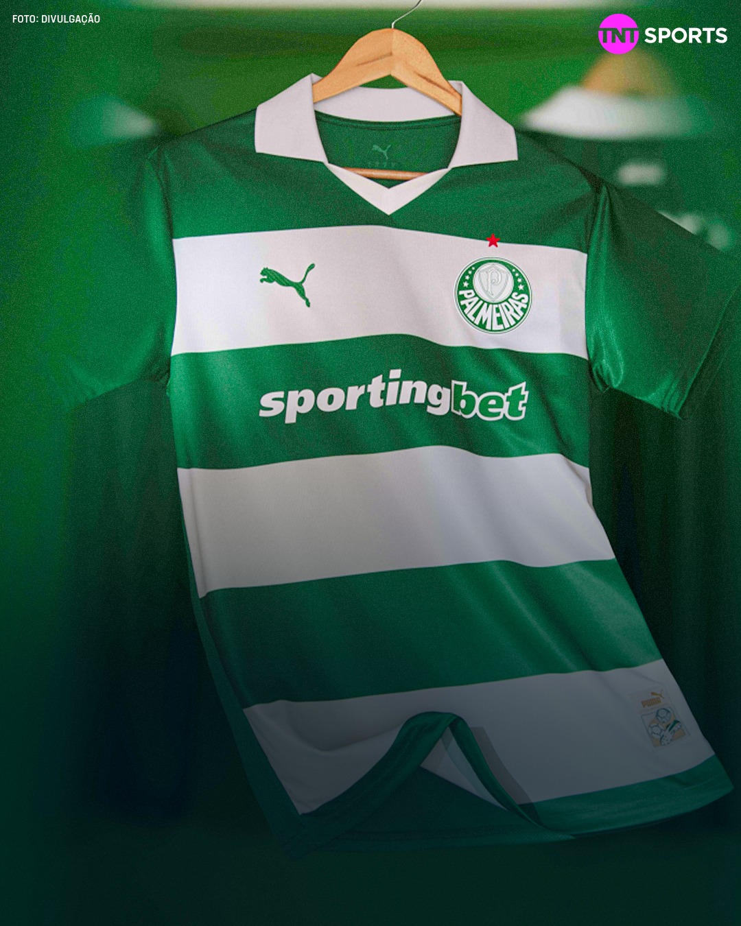 NOVO MANTO! 🐷💚🤍 O Palmeiras lançou nesta quarta (19) uma terceira camisa em homenagem à torcida. Composto de listras horizontais em verde e branco, o uniforme será vendido de forma exclusiva aos sócios-torcedores. A estreia do novo manto do Verdão será ainda hoje, na partida diante do Vitória, no Allianz Parque, pelo Brasileirão Betano.