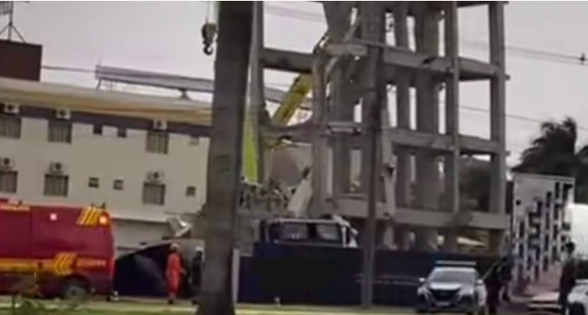 A estrutura de um hotel em construção desabou, esta tarde, na avenida Universitária, no Parque das Emas. Equipes do Corpo de Bombeiros realizam atendimento da ocorrência, na qual não houve vítimas.